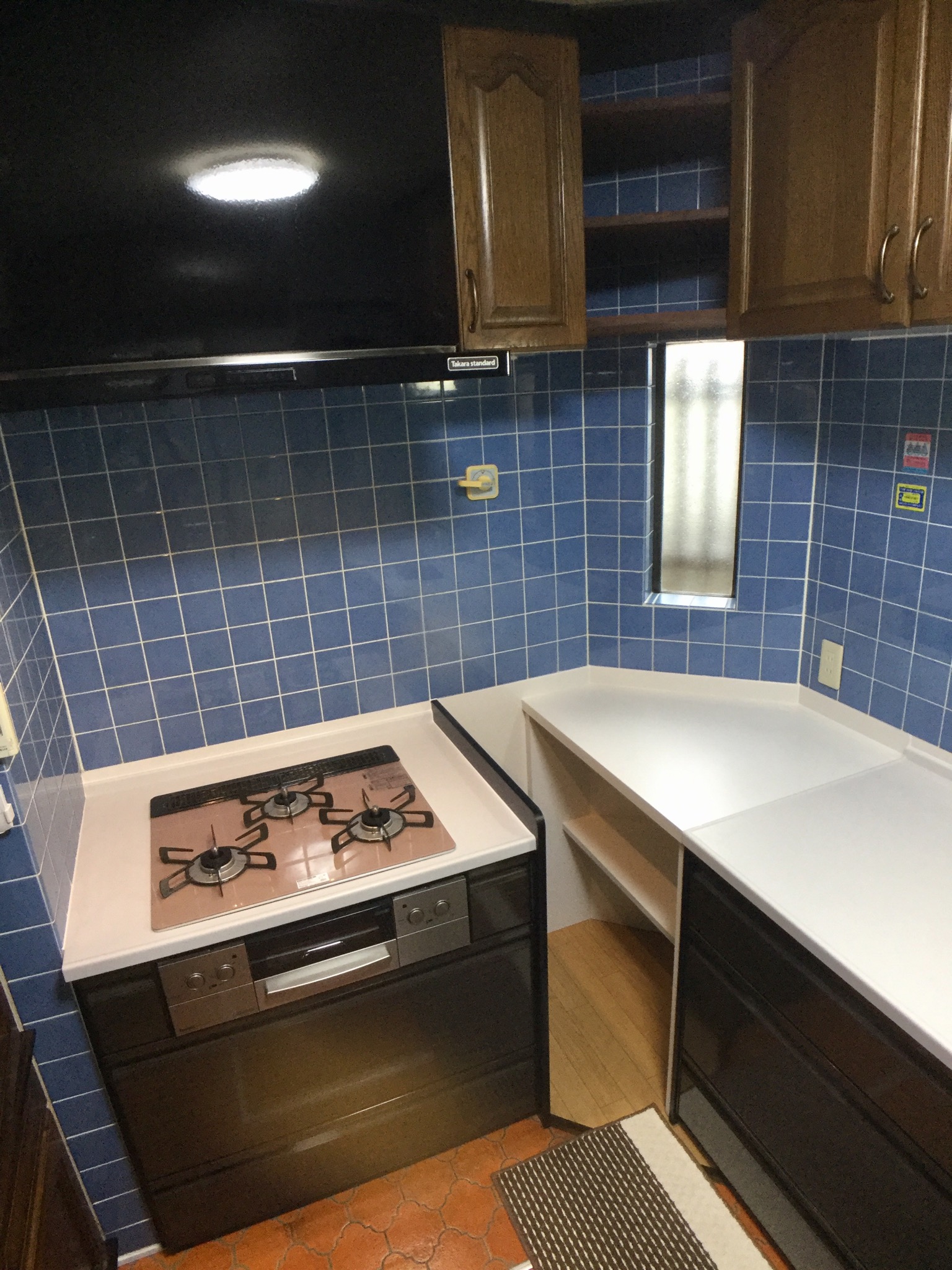 貼りました。レンジフードはW900にして以前より掃除もしやすく吸い込みも良くなりました。