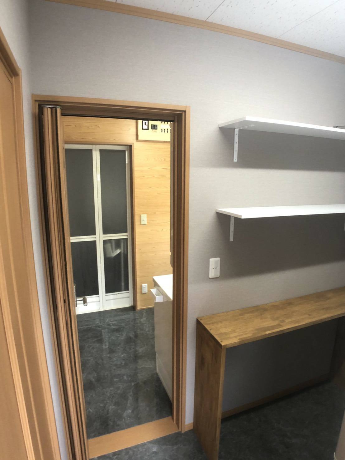収納でふさがっていた扉も使えて使い勝手を考え、洗濯機の位置を変更しました。